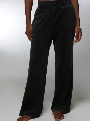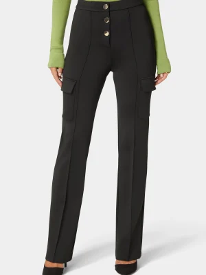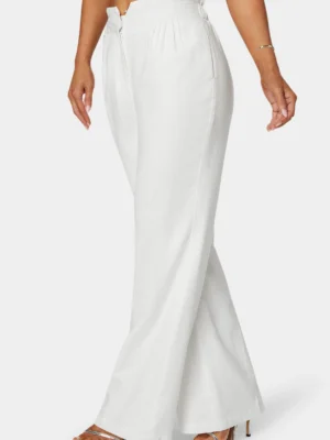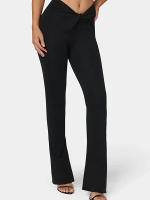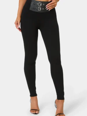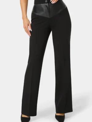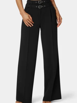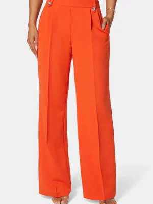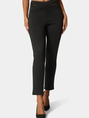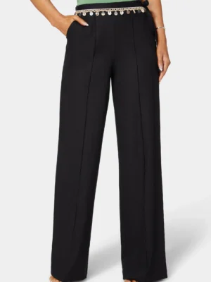 Black Wide-Leg Pants with Metallic Coin Waist Detail