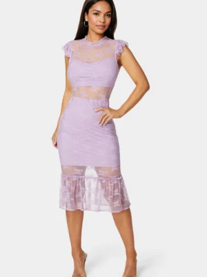 The coordinated high-waisted skirt hugs the figure before flaring out into a graceful hem, enhanced by intricate sheer lace panels that bring both movement and a hint of allure. The skirt is partially lined for coverage while leaving the sophisticated lacework visible at the hem. Perfect for cocktail parties, evening events, or any special occasion, this eye-catching set blends feminine charm and bold sophistication. Pair with sleek heels and minimal accessories for a truly chic look.