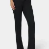 Step up your style in these stretch black pants cut with a gently flared leg for added drama. The fitted silhouette is elevated by a unique twist detail at the front waistband, delivering a bold touch that sets these pants apart. Crafted from soft, supportive fabric, they offer an effortlessly smooth fit that hugs from the waist through the thigh, then subtly flares for a leg-lengthening effect.​