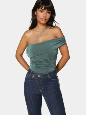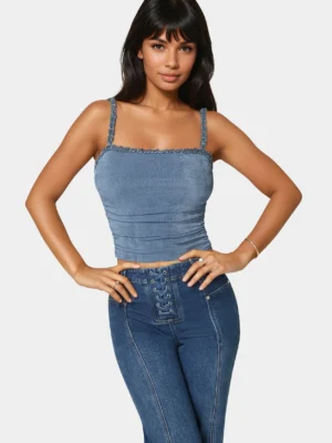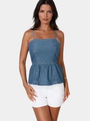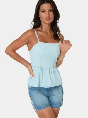 Unique Features: Denim bustier overlay stitched onto white shirt