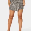 Make a wild statement with this cheetah print mini skirt, designed to bring out your bold and adventurous side. This skirt features a striking all-over animal print set against a sturdy, structured fabric, offering lasting style and confidence. The high-rise silhouette is enhanced with a unique overlap panel on the front, fastened by a trio of statement buttons. Convenient belt loops and back patch pockets add both functionality and a touch of laid-back edge, perfect for a variety of occasions.