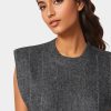 Introduce modern edge to your wardrobe with this heather grey sleeveless knit top, designed with structured shoulder pads for an elevated look. The soft ribbed texture offers both comfort and style, while the straight hem and relaxed fit make it effortlessly versatile. Perfect for creating layered outfits or making a statement as a standalone piece, this top transitions smoothly from daywear to evening ensembles.