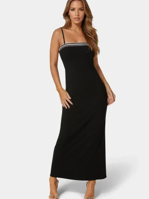 Dress style: Sleeveless midi, cowl front and back, fitted waist, flared hem.