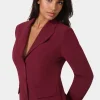 Make a bold statement with this merlot blazer jacket, tailored for a sleek, contemporary silhouette and finished with chic feather trim detailing. The notched lapel and single-breasted closure create a classic, structured look, while the deep merlot color brings a touch of sophistication. Featuring discreet flap pockets and fitted long sleeves, this jacket stands out thanks to its unique feather trim at the hem. Perfect for turning heads at evening events, special occasions, or upscale gatherings, this blazer combines playful elegance with timeless tailoring.
