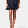 Embrace flirty charm with this navy mini skirt, featuring a playful flared silhouette finished with delicate ruffle trim details. The skirt is designed with a high waist and a flattering, easy-to-wear fit, while ruffles trace along the hem and curved seams for a romantic, whimsical effect. Lightweight and airy, it’s perfect for casual outings, brunch dates, or pairing with both fitted and flowy tops.
