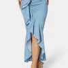 Elevate your wardrobe with this sophisticated pastel blue mermaid maxi skirt, designed to add feminine flair and elegance to any ensemble. Crafted in a soft, stretch fabric, this piece offers a smooth high waist that gracefully accentuates your shape before flaring out at the hem with a dramatic, ruffled finish. The asymmetric front ruffle detail creates captivating movement and a touch of romantic style, making this skirt perfect for both day events and special evenings.