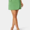 Add a fresh and modern twist to any ensemble with this stone green mini skirt, featuring a distinctive wrap-front silhouette and playful utilitarian details. The crisp, structured high-waist design flatters the figure while providing comfortable everyday wear. A statement flap pocket adds both practicality and visual interest, making it perfect for styling with both fitted tops and relaxed shirts.