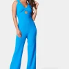 Make a bold fashion statement with this striking blue jumpsuit, featuring a unique cross-front bodice and playful keyhole detail at the neckline. The sleeveless design offers a modern, structured fit, complemented by wide legs that provide elegant movement and a flattering silhouette. The jumpsuit is crafted from a smooth, comfortable fabric with a zip closure at the back for secure wear. Perfect for evening occasions, parties, or any time you want to stand out, this design seamlessly combines chic style with an easy, all-in-one outfit.​