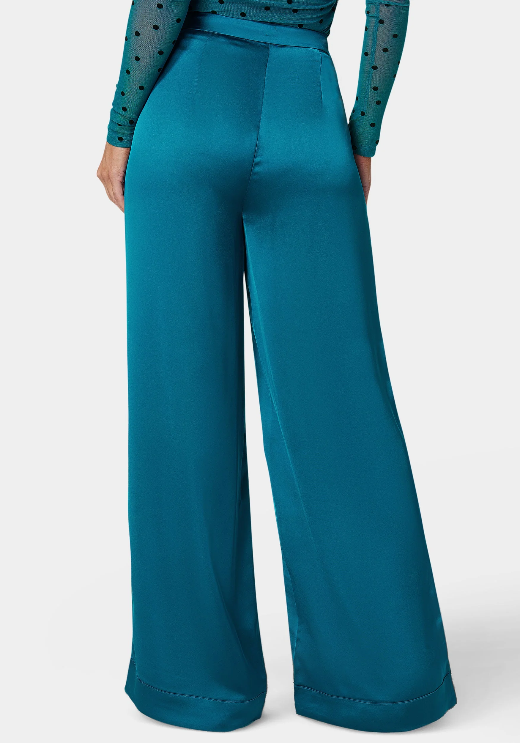 Upgrade your wardrobe with these chic sapphire satin pants, designed to offer both style and comfort. Featuring a high-rise waist and elegant wide-leg silhouette, these pants are perfect for sophisticated evenings or making a statement at daytime events.